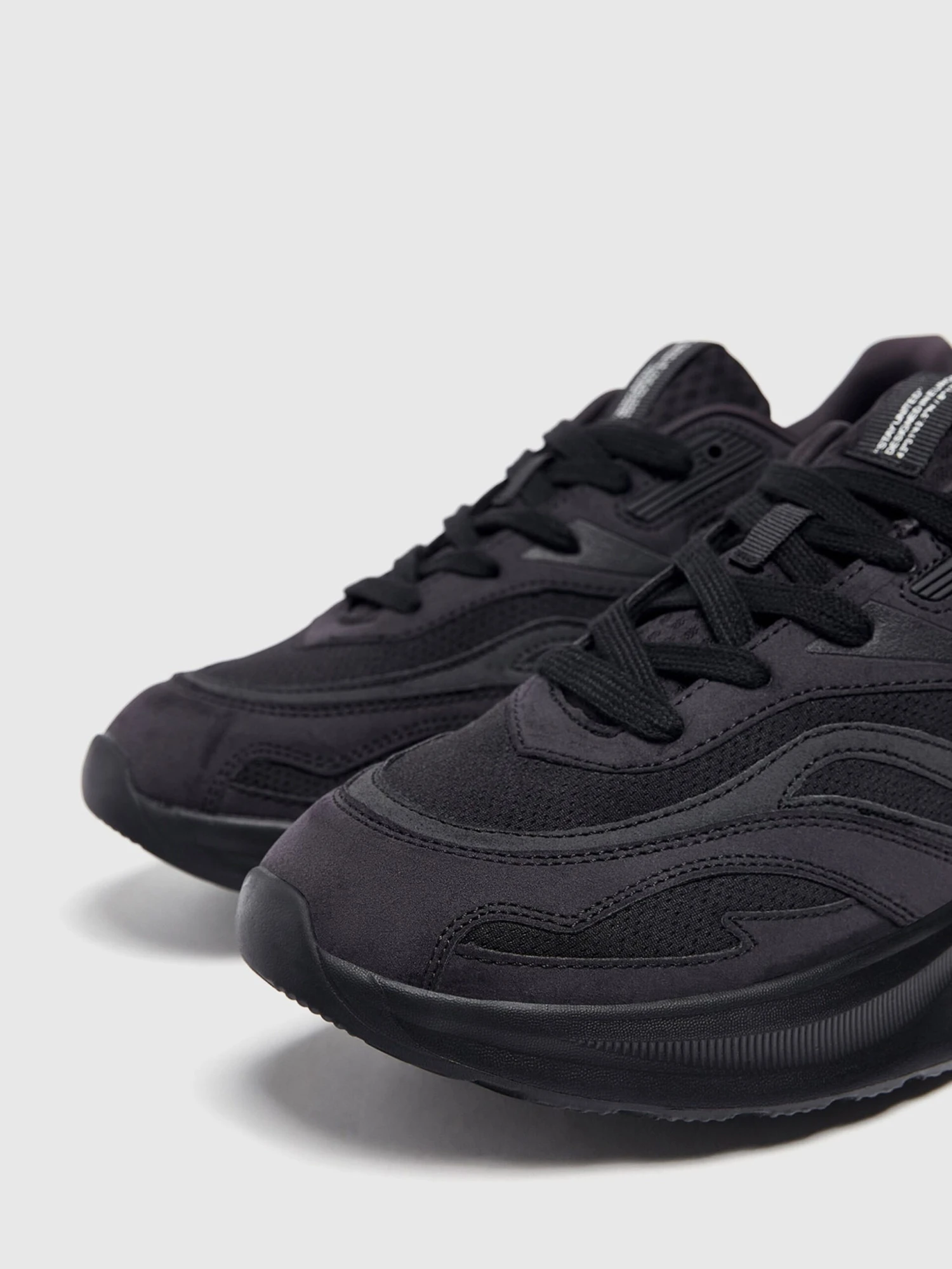 EffenRonde neusGevoerdVetering met 6 gatenProfielzolenVersterkte hakLabel patch/label flagGewatteerde randImitatieleerMeshSnoersluiting