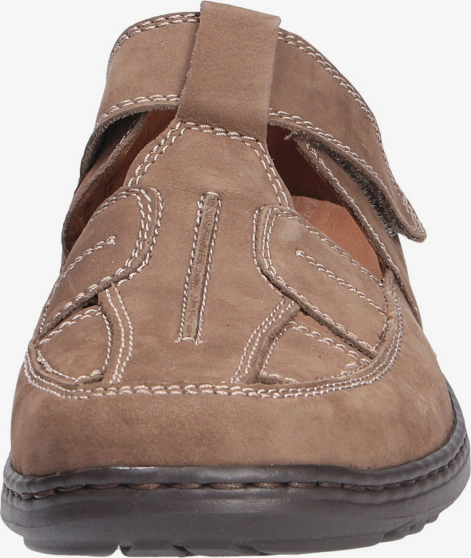 EffenLeerRonde neusLuchtdoorlaatbare inlegzoolProfielzolenUitneembare zoolContrasterende nadenNubuck leerFlexibele zoolVelcro sluiting